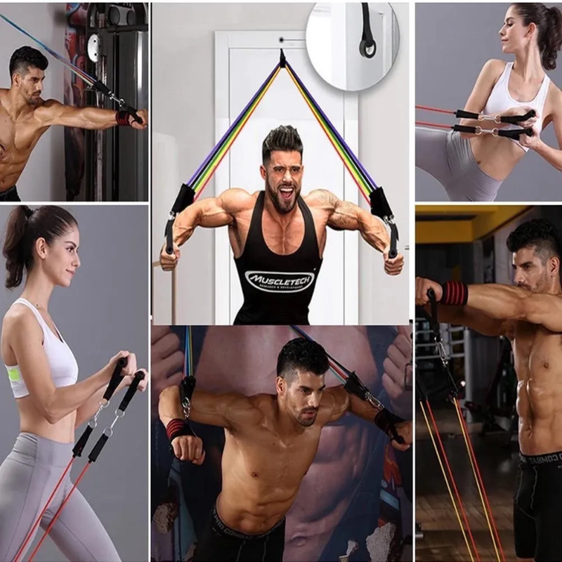 Set de Bandas elásticas para ejercicio en casa de 11 Piezas de Súper Calidad
